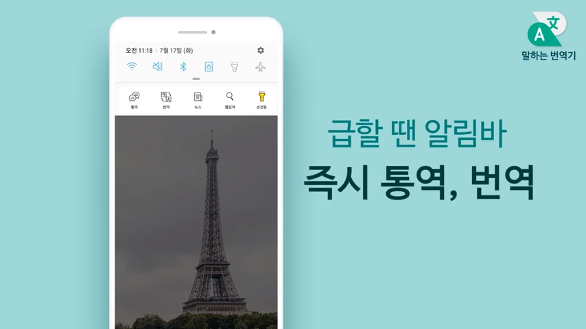 - 번역, 통역, 음성인식, 외에도 키보드, 알림바, 뉴스, 검색, 손전등까지!! ALL IN ONE 번역기는 말하는 번역기입니다. 알림바 기능으로 스윽~ 한 번이면 번역, 통역이 나타납니다. 앱 서랍에서 찾지 마세요. 알림바에서는 0.001초 만에 번역이 가능합니다.