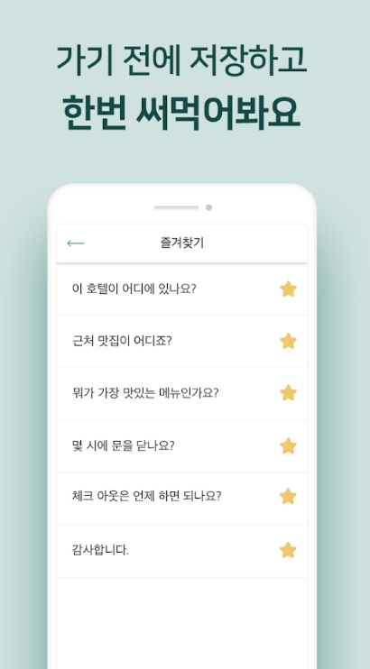 • 표현 노트: 번역된 단어와 구문을 별표 표시하고 저장하여 나중에 참고(모든 언어)할 수가 있습니다.
