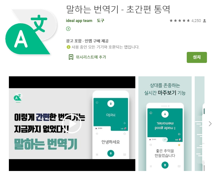 ▶ 통역 번역 어플 '말하는 번역기' 다운로드